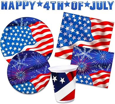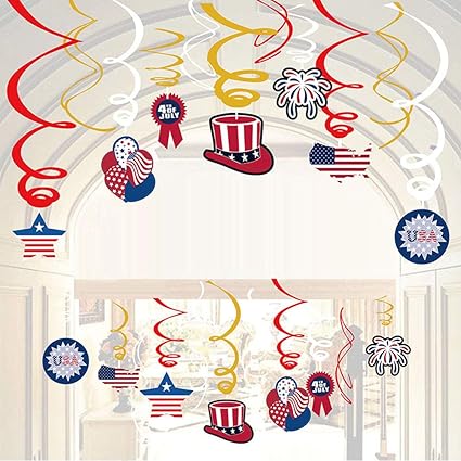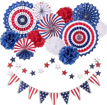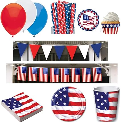 Amazons choice for fourth of july party supplies dii 14x74 juteburlap table runner 4th of july perfect for independence day july 4th party summer bbq and outdoor picnics 43 out of 5 stars 307. With our 4th of july decorations your party sparkles brighter than a 4th of july sky. 29pcs 4thfourth of july patriotic decorations set red white blue paper fansusa flag pennantstar streamerpom pomshanging swirls party decor supplies 48 out of 5 stars 109 1799.
