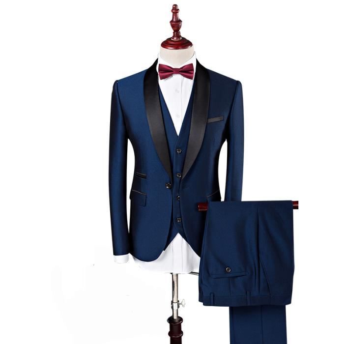 Costume Homme Coupe Slim Cintrée Deux Ton Bleu Noir 3 Pièces Pour