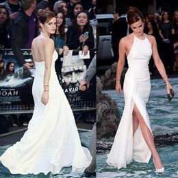 Aliexpress Com Buy Emma Watson Stuns In White Backless Halter Neck Off Shoulder Side Slit Long Mermaid Celebrity Dress Sexy Open Back Celebritygown