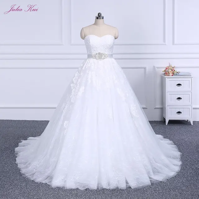 Us 198 81 25 Off Aliexpress Com Buy Elegant Strapless Bridal Dress Beautiful Lace Court Train A Line Wedding Dress Puffy Princess Wedding Gown