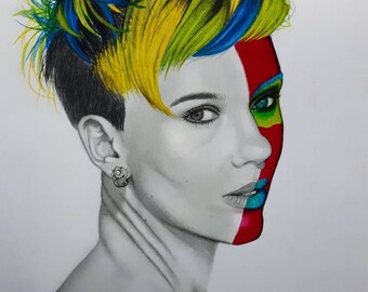 Scarlett Johansson Pencil And Pencil Colours 6x8 Art