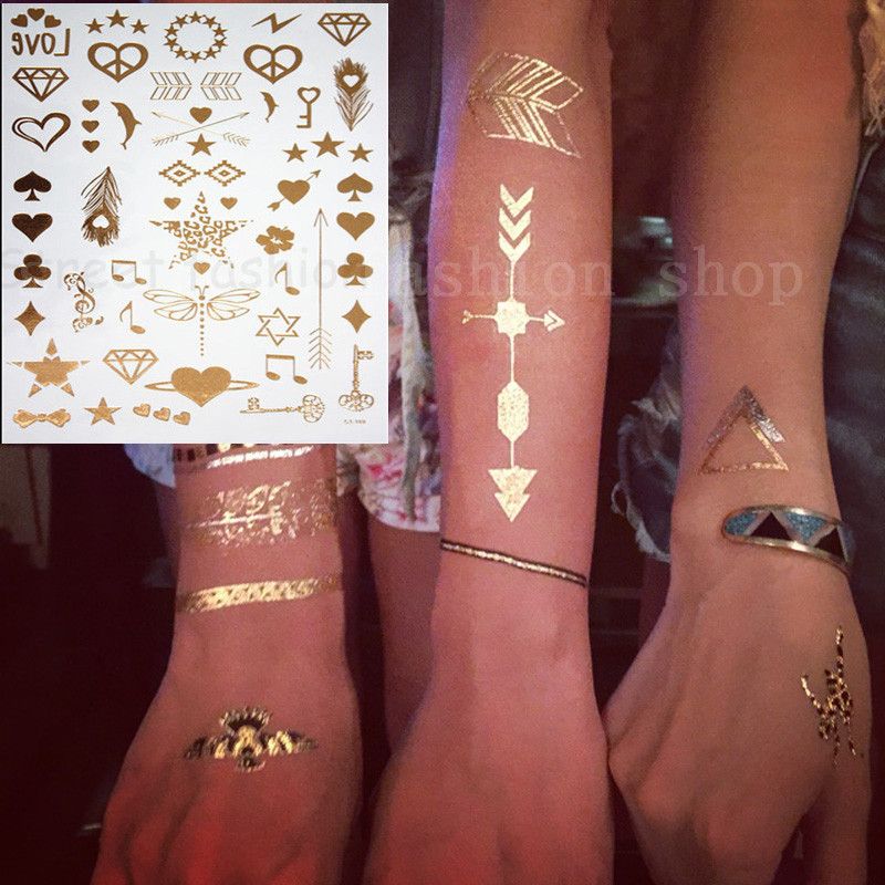 Fashion Gold Silver Metallic Temporary Tattoos Sticker