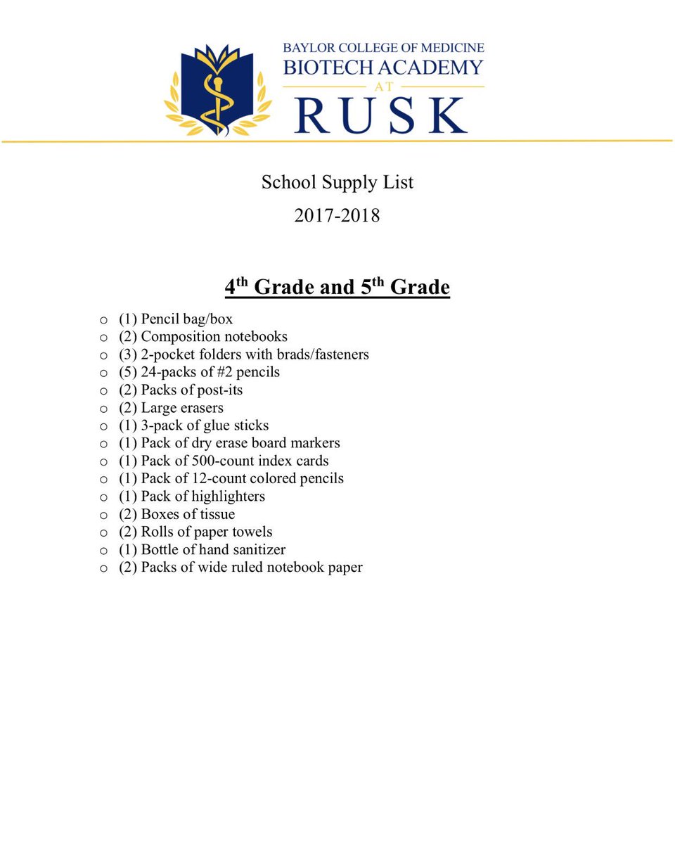 Bcm Biotech Rusk On Twitter 2017 2018 School Supply List