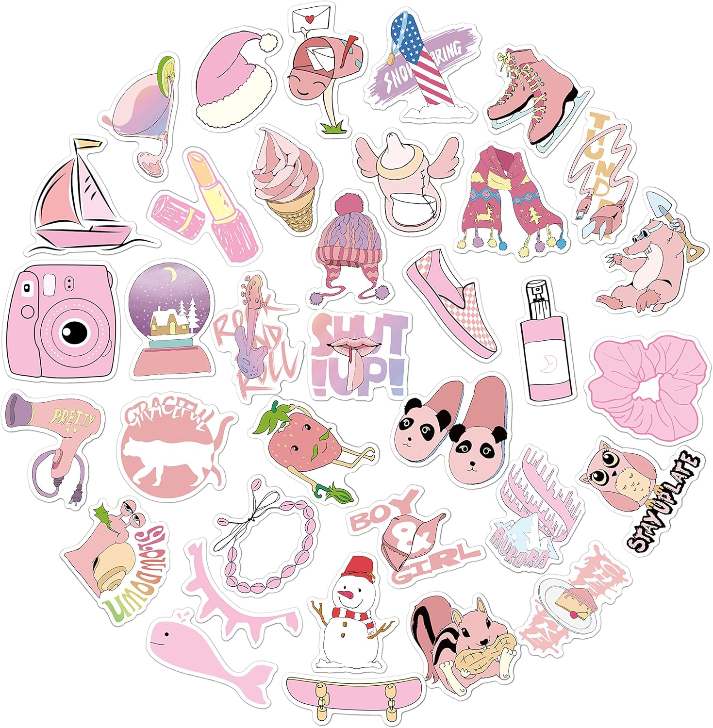 Stickers For Hydro Flask Pink Vsco 35 Pcs Stickers For Teens Girls Boys Kids Aesthetic Stickers For Water Bottles Skateboard Laptop Phone