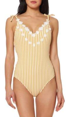 Jessica Simpson Cotton Candy Striped Scalloped One Piece Swimsuit